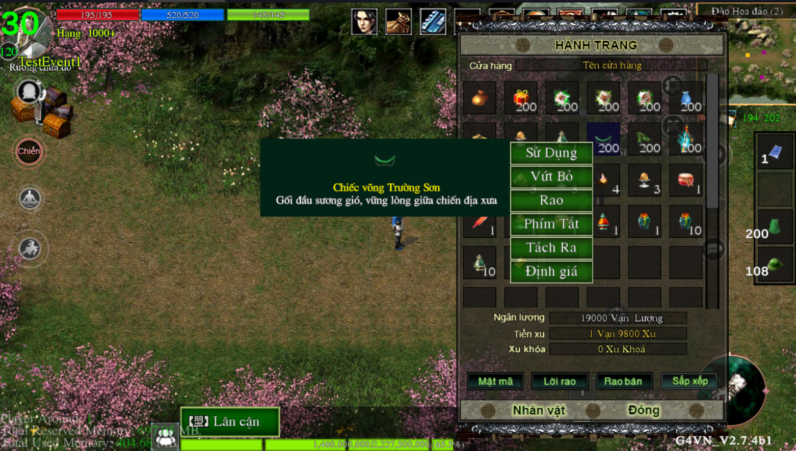 Trong thời gian diễn ra sự kiện, các đại hiệp lên Đào Hoa Đảo và sử dụng Chiếc Võng Trường Sơn (nhận được từ sự kiện NHỚ ƠN ANH HÙNG) để tiến hành mắc võng nhận thưởng.