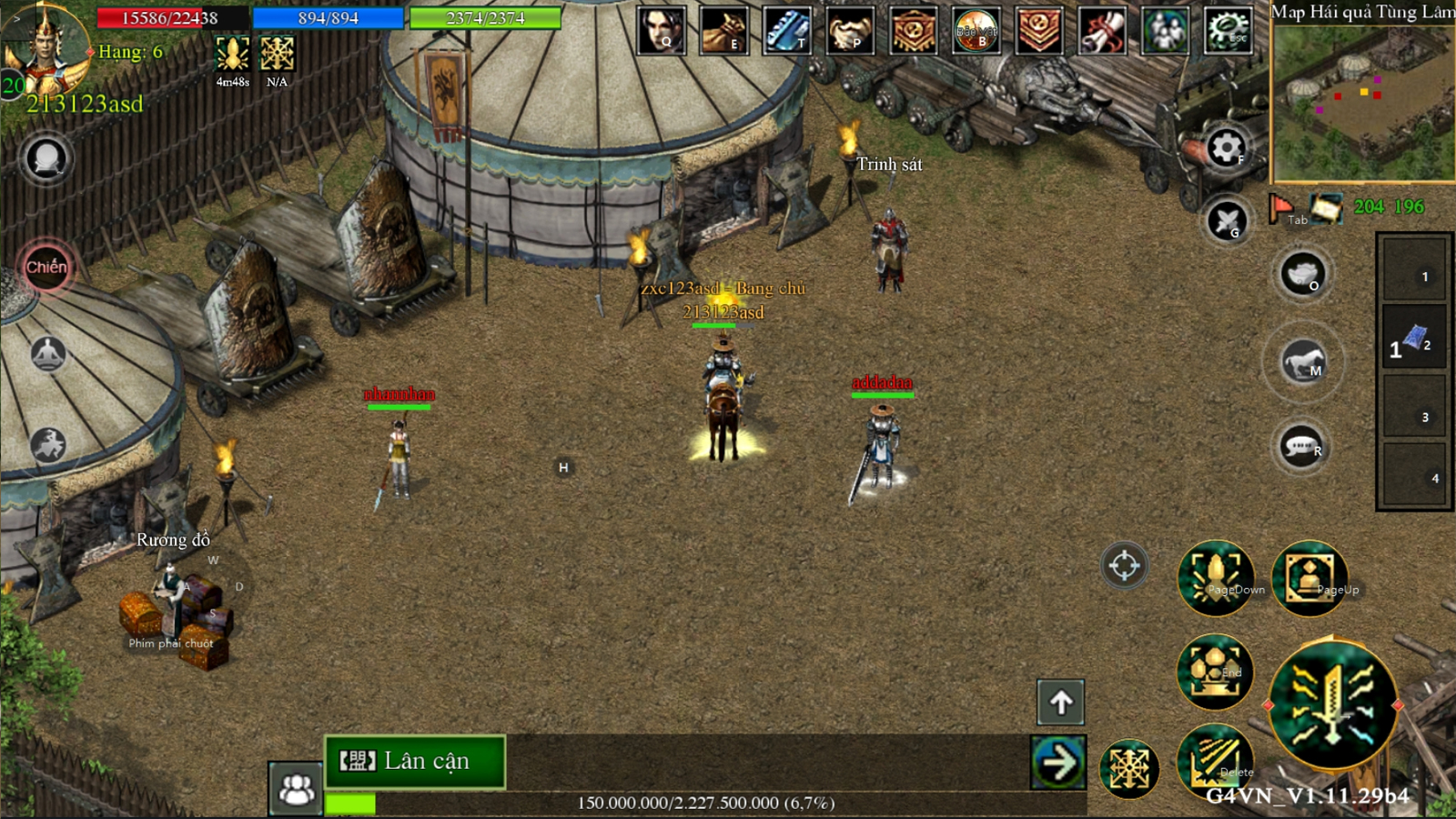 Khi tiến vào bản đồ, đại hiệp sẽ được đưa tới ngẫu nhiên một trong 2 doanh trại Đông - Tây. Trong bản đồ này, nơi các đại hiệp có thể mở rương chứa đồ hoặc mua thêm dược phẩm tại NPC Quân Nhu Quan. Khi đã vào Chiến Trường Tùng Lâm, các đại hiệp sẽ được mặc định lưu rương, khi bị hạ gục sẽ hồi sinh lại một trong hai doanh trại này. |
