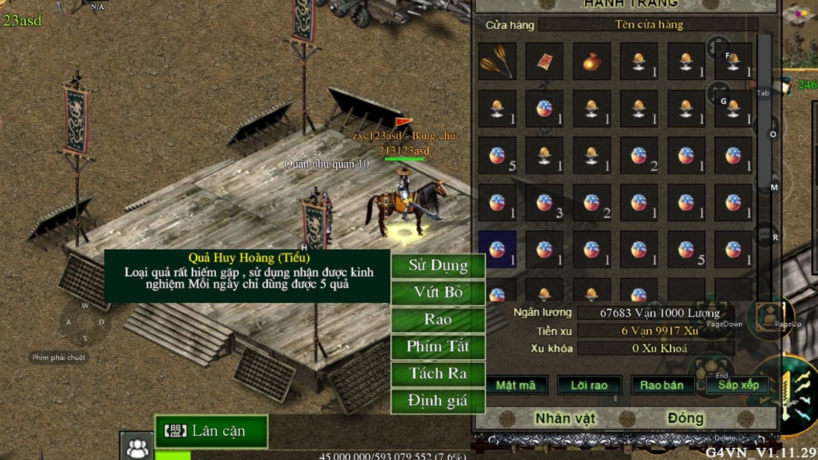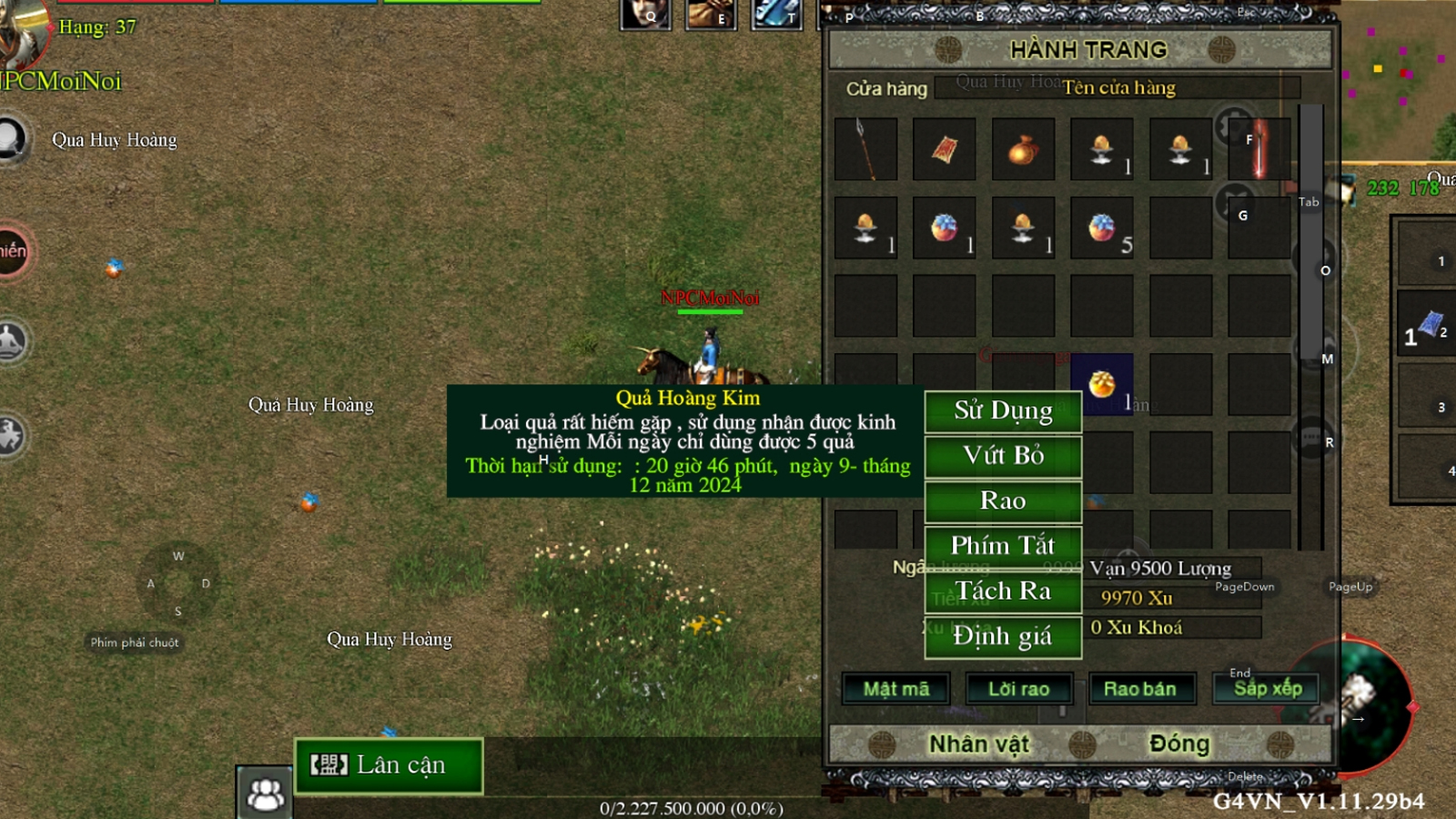 | Quả Huy Hoàng Trung (đặc biệt) | 10.000.000 EXP | 80-119 | Ép từ 1 Quả Trung + 2 xu hoặc 100 vạn. |