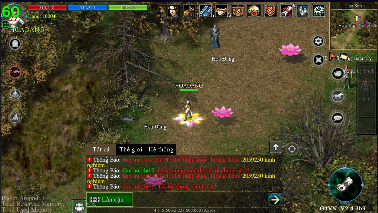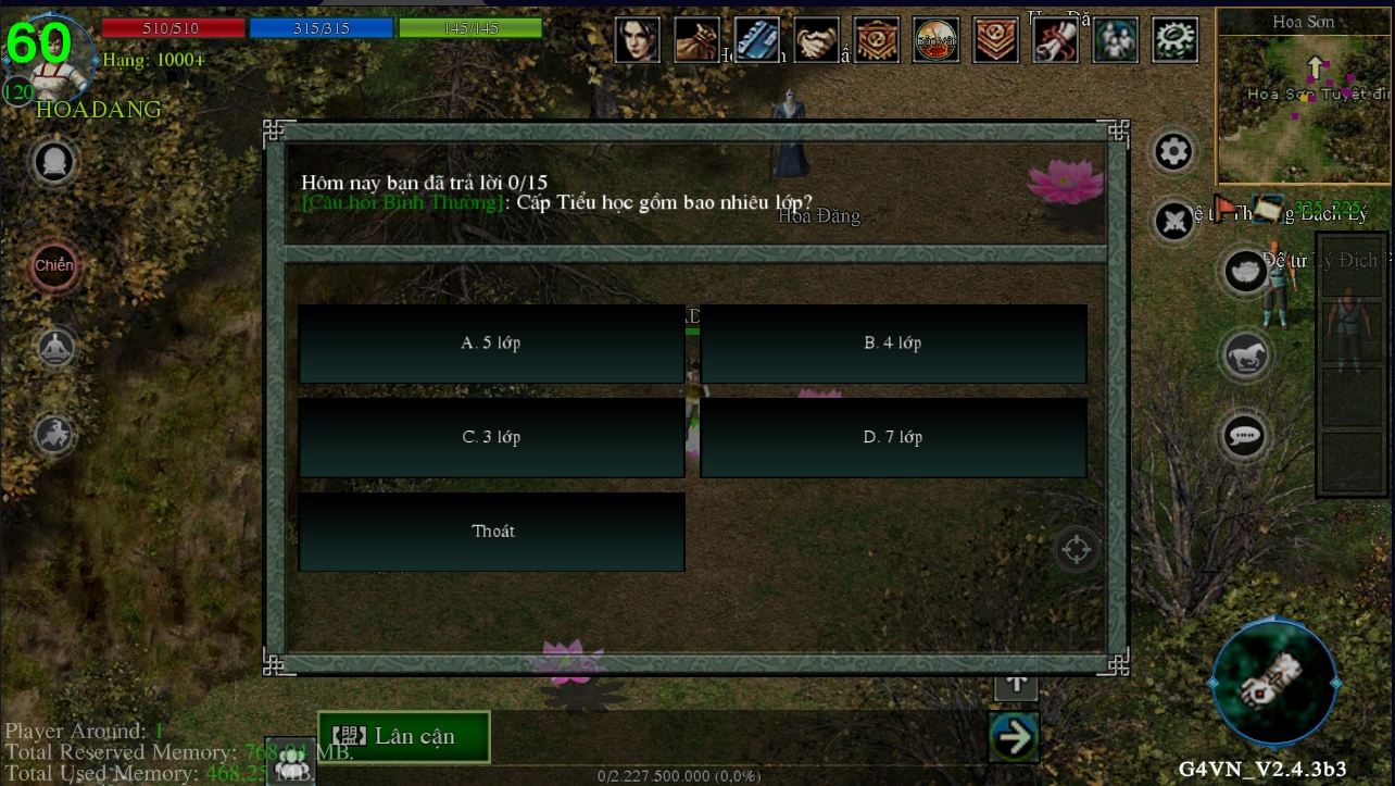 Bước 2: Trả lời các câu hỏi trong Hoa Đăng đưa ra, mỗi lần trả lời sẽ tiêu hao ngân lượng (hoặc Xu với các câu hỏi cuối).